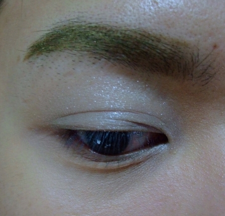 先使用右上角的銀色打底,眼影的粉質超硬的建議用手指或是海棉棒上色,使用刷子的話會有飛粉的情況產生唷,用手指是我覺得最好上色的方式了。