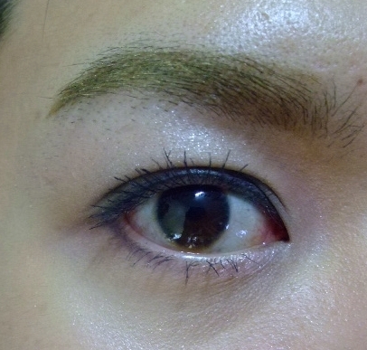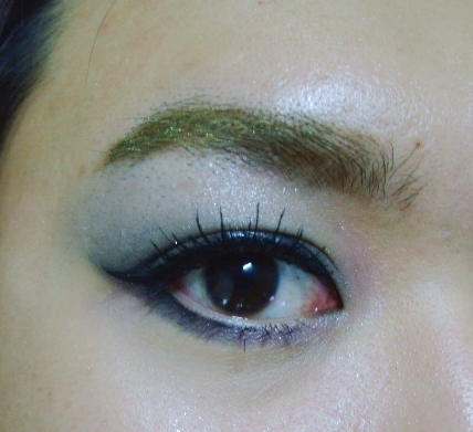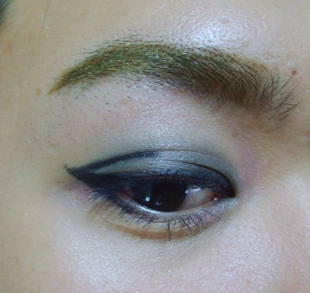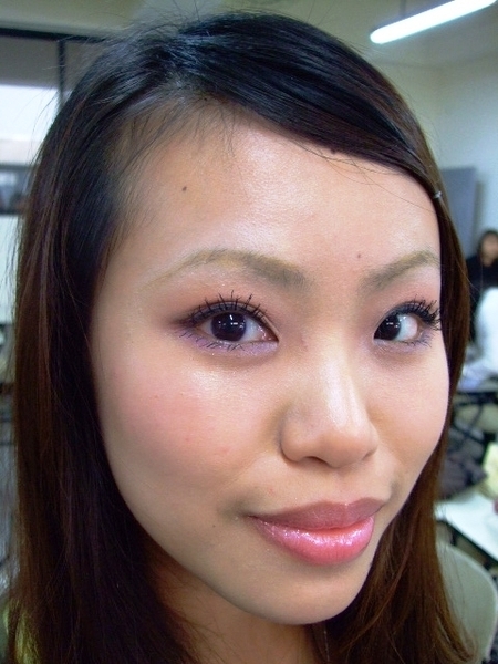 可能是剛看完我們科的畢業展,忘了從哪學來的眼線畫法,就是用一般的眼線筆在眼角的部位往外延伸再勾回半個眼距的線在眼摺的部位,當然不是這樣就完成了,只是先用眼線筆打個底。