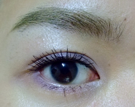先用珠光白色打個底,再用紫色化在眼摺下眼影也來一點紫色,這個紫色是有春天粉嫩感的紫色,單擦就很好看了,所以白天出門就可以單用這個紫色唷。