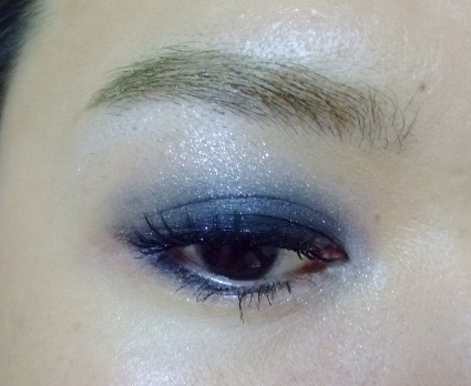 吃完晚餐後,到了KTV要唱歌就用最深的珠光黑色把眼睛框起來吧,這個黑色一樣很顯色所以要小心使用,眼下最好先撲一點蜜粉,預防粉末掉落還可以處理一下。