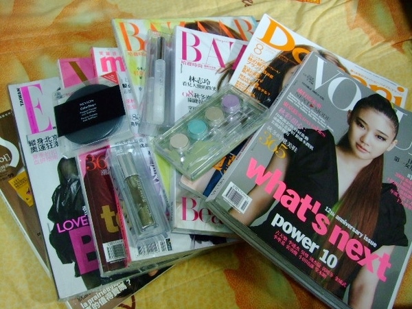 這一陣子經濟拮据,雖然是餓不死但就沒辦法大肆的買奢侈品,只是還滿清心寡慾的對於化妝品這一回事,每當拿起想要的化妝品的時候,我腦中的家中化妝品清單會開始掃描,通常掃描過一次後我就會把東西放下了,所以最近好像一陣子沒有再買新寶物了,比較有印象的就是LUNASOL的聖誕彩妝組了,然後我是一個很愛看雜誌的除了每個月會買美人誌跟大美人還有FF之外,偶而看有沒有送贈品決定要不要買比較貴的雜誌,像是VOGUE、美麗佳人、ELLE這種一本要兩百元的雜誌,買起來還滿可觀的,所以這幾個月來我的最愛就是到各大舊書攤掃雜誌啦。