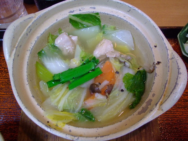 下午跟住在千葉的雞蛋小姐去逛新宿,去PEPE的店買了些東西,晚上肚子餓了我就說要吃大戶屋,因為看到男女糾察隊的那個沒有家住的辣妹布蘭妮那一集,一直出現大戶屋所以就想吃看看,我點了野菜雞肉鍋跟一個甜點,結果一打開鍋我先罵幾句髒話,這樣也能賣800日幣唷。