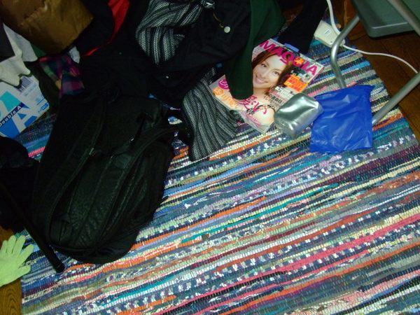 鋪在我房間的地毯也是看很久的東西,是一個叫SALUT的少女家居品牌,這個牌子特色就是全品都是1050日元,而且我買這條還打八折算成台幣大概280元左右呢,剛好鋪在我桌子前面,這樣腳也不會直接碰到冰冷的地板,只是我現在房間有點亂,哈哈,這條地毯好像是用殘布編的,所以店面每一條都不一樣花色,說實在我考慮了三次吧,因為它有一點點重,怕到時想帶回台灣有點麻煩,但我想只有我會帶這種便宜又重的東西回台吧,因為我還滿念舊的,一年後我一定會對他有感情的呢。