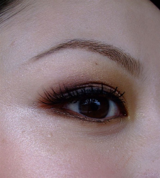 下眼影先用MJ的咖啡色眼線筆打底後再疊上NARS GALAPAGOS眼影唷,這個時候也要先把睫毛夾翹刷一點點睫毛膏 ,還要用筆匠的黑色眼線膠填滿睫毛根部,也要帶一點眼尾呢。