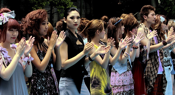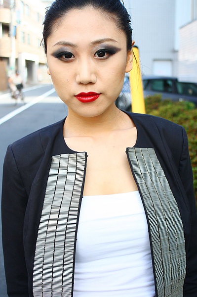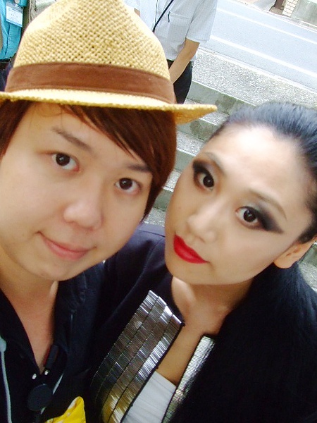 趁走秀的休息空檔,把他抓到路邊拍幾張照片,才一走出去就被日本少年說:這個女的一定是模特兒,看就知道了。這種話聽起來真是太順耳了,話說前天這位天真的小姐,局然頂著這個妝跟我去逛新宿,我跟朋友在新宿車站等他,還開玩笑說他不可能沒卸妝就出門吧,結果大概一百公尺就看到他了,遠遠跑過來說KAKA我來了,我真的被他嚇傻了,當天全新宿的人應該都在看他吧,我們還去歌舞伎町旁的葯妝店買東西,那邊的人一定很好奇我們的組合怎麼會是這樣,他真的是一個天真的女孩呢,跟他的外表完全不搭。