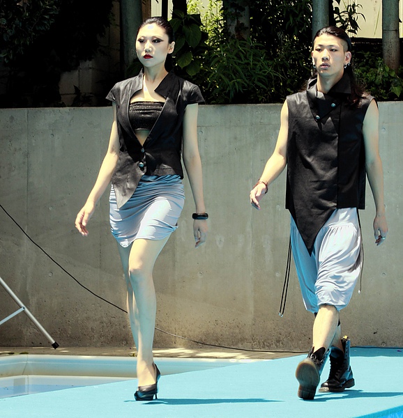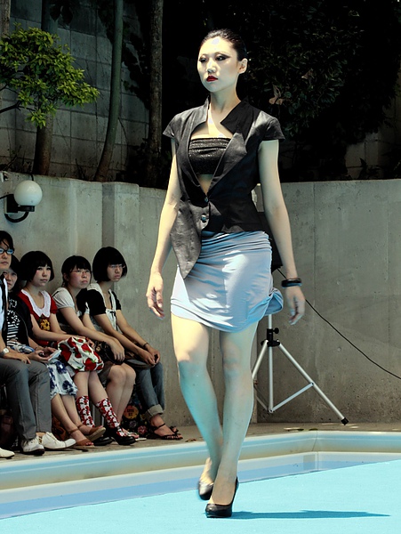 這是馬克文走秀的衣服,也不是說很難看,而是馬克文的私服比這套更好看的滿滿皆是,左邊的女孩也畫了濃妝,他是臉頰上畫了線條的圖騰,只是遠看像是燒傷,還是馬克文的拉長煙燻眼跟紅唇才最顯眼呢,所以我還是堅持我沒有畫太濃,右邊的女孩雖然有化妝可是看起來就是很素顏的感覺,可惜了她穿的衣服,其實我也不覺得馬克文的妝有搶了衣服的風采,説真的大家看到模特兒應該會覺得這女人好有氣勢,然後也會看到衣服吧,不可能真的只是看臉,所以那個韓國妹應該只是不爽我而已,哈哈。