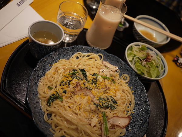 晚餐吃的是比較好的五右衛門的義大利麵套餐,點的是有甜點的組合唷,這樣大概一千五日圓一頓不過還挺滿足的呢