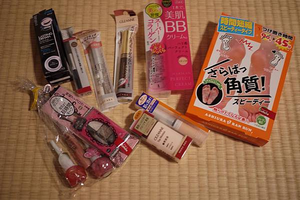 下北澤也有一間化妝品的OUT LET店,叫CELU甚麼的,我也忘記了,那個是連鎖店所以滿多地方都看的到,就賣很多比市價便宜的化妝品啊,那個足膜原本要日幣1200多吧,那邊只要800多而已,而且時間只要敷45分鐘就一樣很有效了,我現在正在大脫皮當中啊,好爽唷,也買了些塞尚的便宜化妝品,媚比林的眼線膠是帶有深藍色光澤的所以也買了一個呢